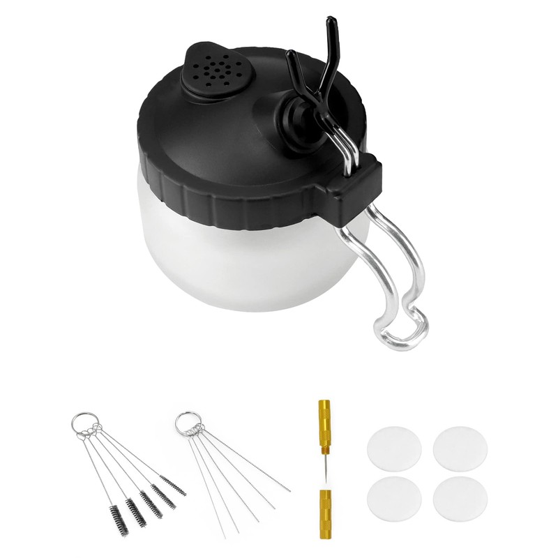 - Airbrush cleaning kit: 1 x included cleaning pot, 5 x cleaning brushes, 5 x cleaning needles, 1 x cleaning scraper