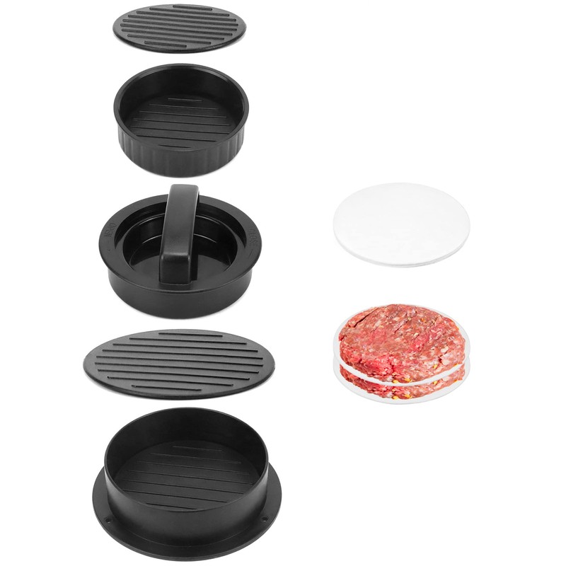 - 3-in-1 Burger press: The burger press has 3 parts with different functions, the bottom mold is for big patties, the middle is for filling patties, and the top is for mini patties, which can meet your needs for making burgers of different sizes