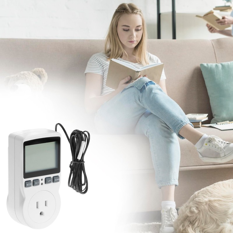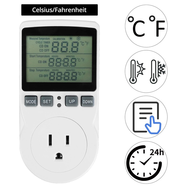 QWORK Digital Thermostat Outlet Plug Temperature Controller Socket - 120V, 15...
