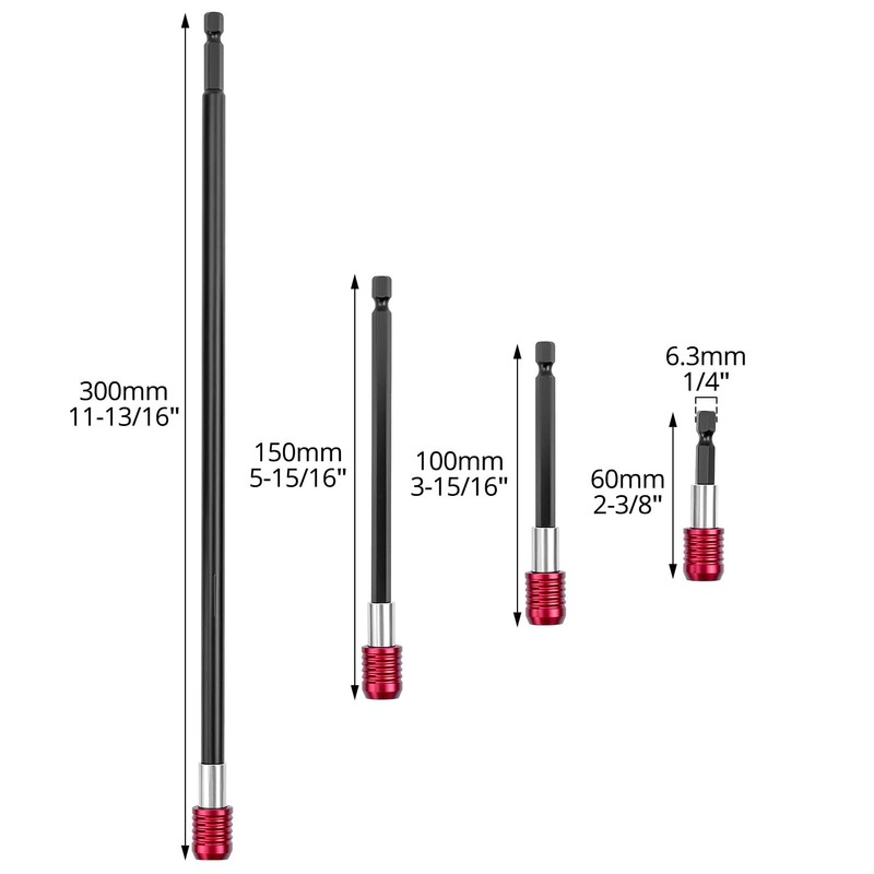 - 4 Sizes: Includes four magnetic drill bit extenders with length variations of 2", 4", 6", and 12", allowing you to tackle a range of tasks with precision and ease.