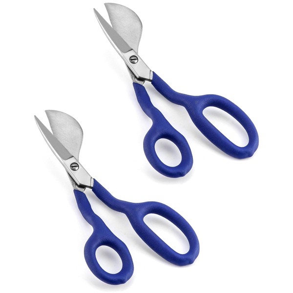 QWORK Duckbill Shears, 7 in Duckbill Applique Scissors, for Carpet Pile, Carpet Punch - Blue, 2 Pack