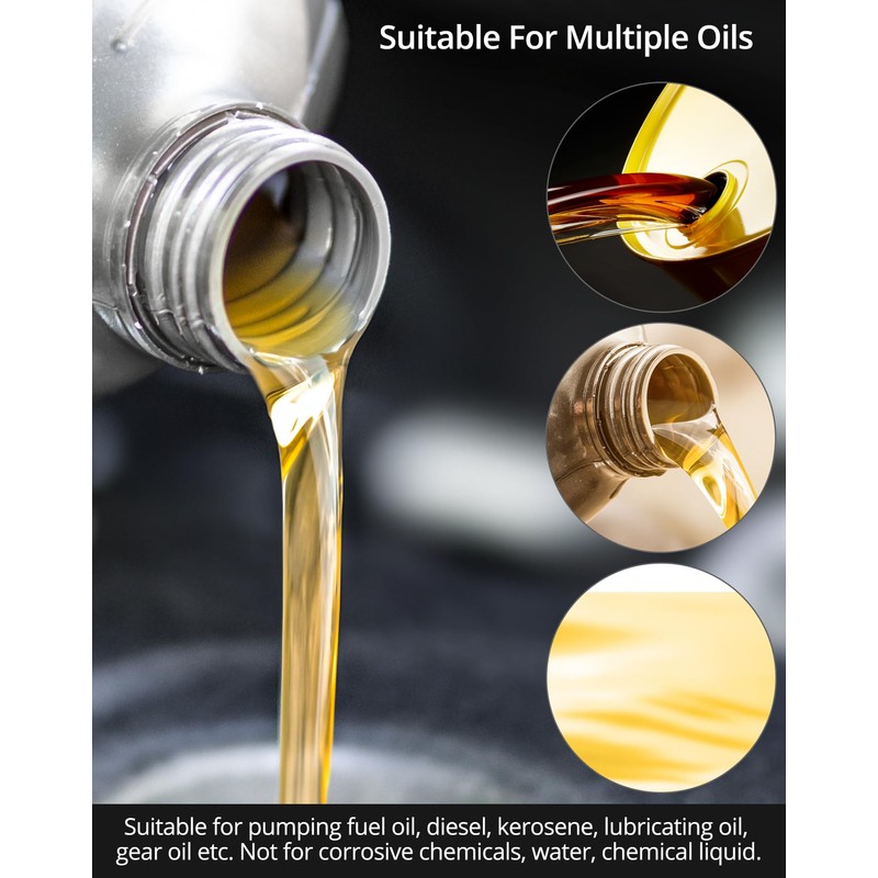• Wide Application: Suitable for pumping weak acid, weak base, alcohol, diesel oil, engine oil, kerosene and water. Don't use in gasoline and drinking water please.