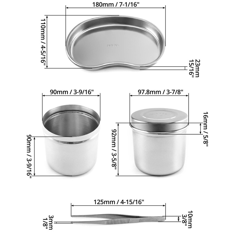 - Package: Includes 1 pcs medical tray, 1pcs Sterilizing Jar, and 1 pcs Tweezer.