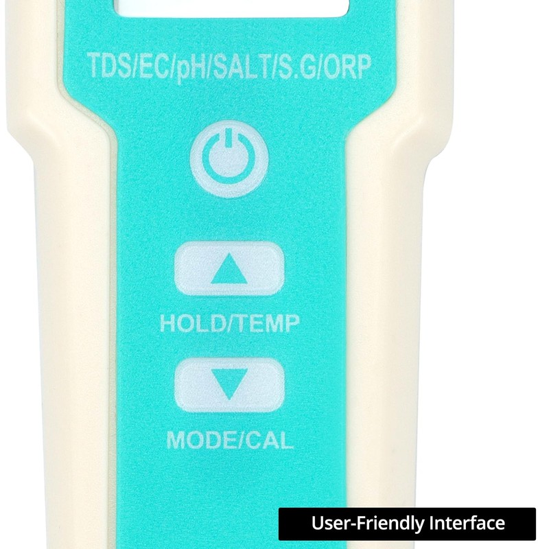 - Versatile Water Testing: The tester is capable of testing seven critical parameters including free chlorine, pH, salinity, ORP, TDS, EC, and temperature.