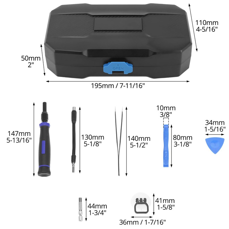 - Comprehensive Toolset: Features 13 additional tools including a magnetic pickup bit, magnetic mat, magnetizer demagnetizer, and four long neck bits for enhanced functionality.