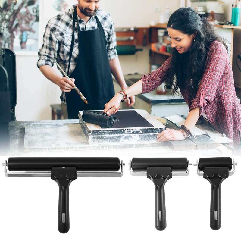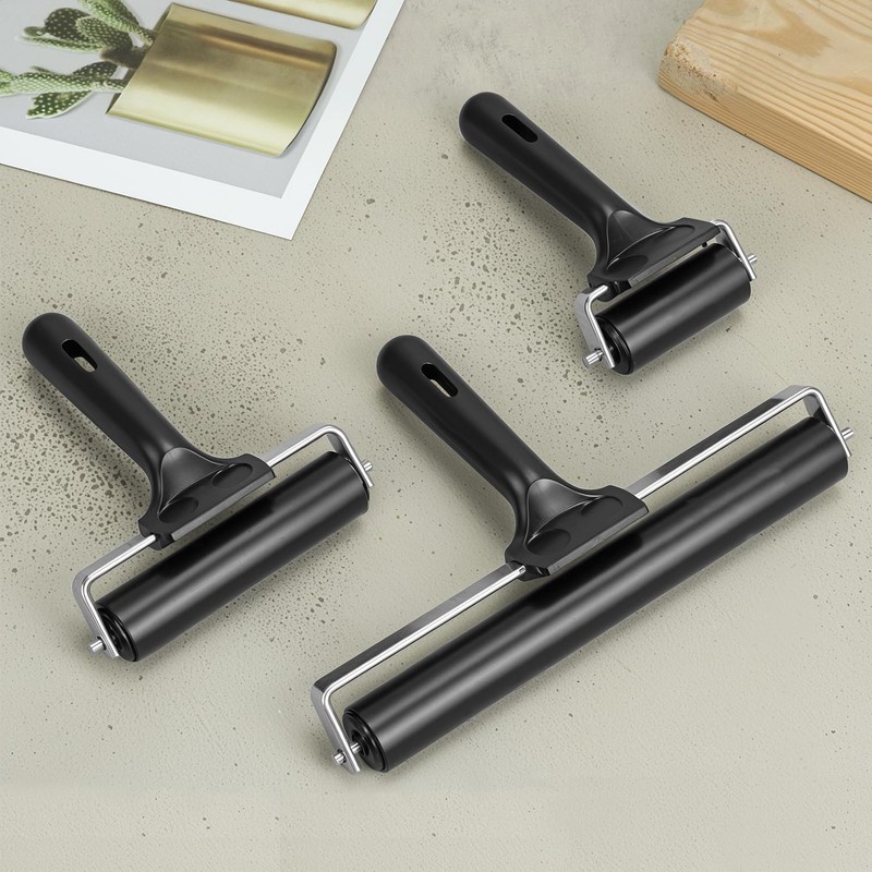 QWORK Printmaking Brayers, 3 Pack Brayer Rollers for Wallpapers Stamping, Vinyl Roller Ink Paint Brush (2.4", 4", 7.9") (Black)