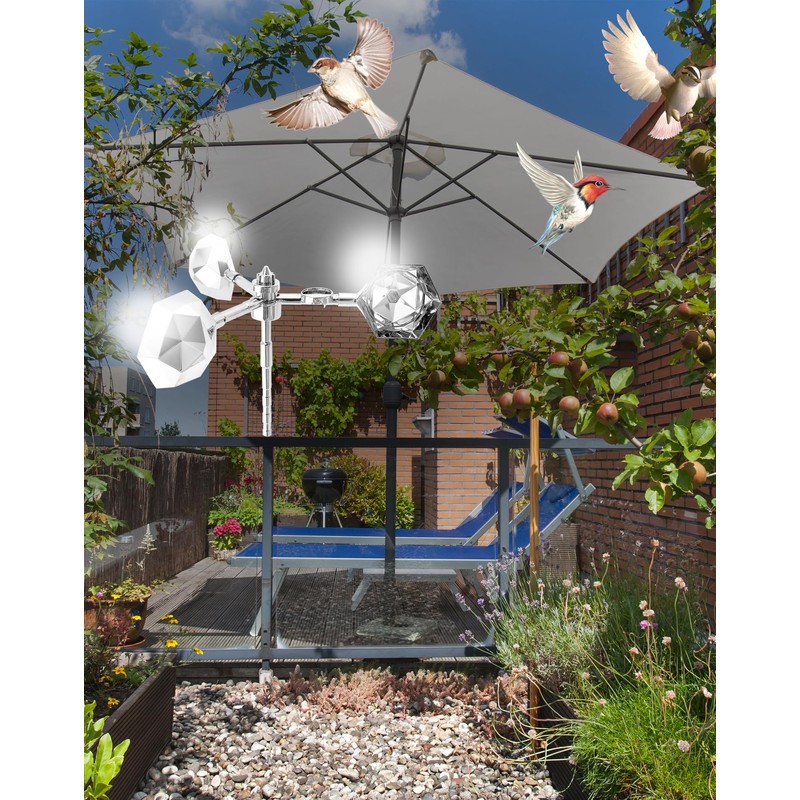 • It can withstand strong winds of up to 30-40 km/h and rotates 360° under the wind drive. There is no blind spot to reflect the glaring sunlight, which could scare off birds.