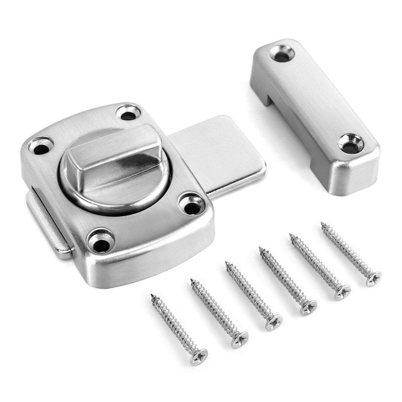 QWORK® Rotate Bolt Latch Lock Stainless Steel Gate Bathroom Door Lock, Applicable to Various Doors, Silver