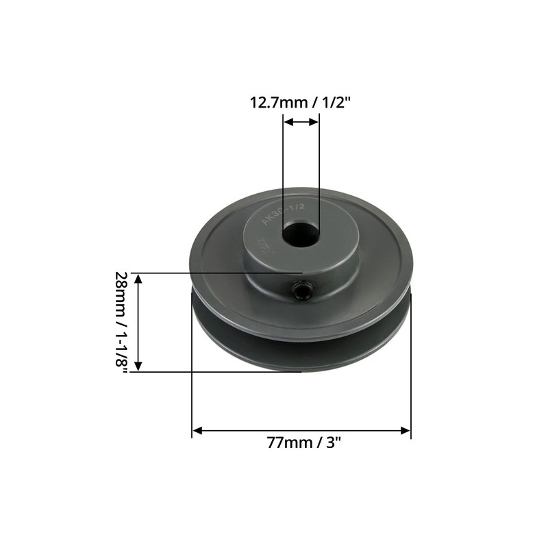 - Fits Shaft Dia.: 1/2 in. Pulley Bore Type: Fixed Bore.
