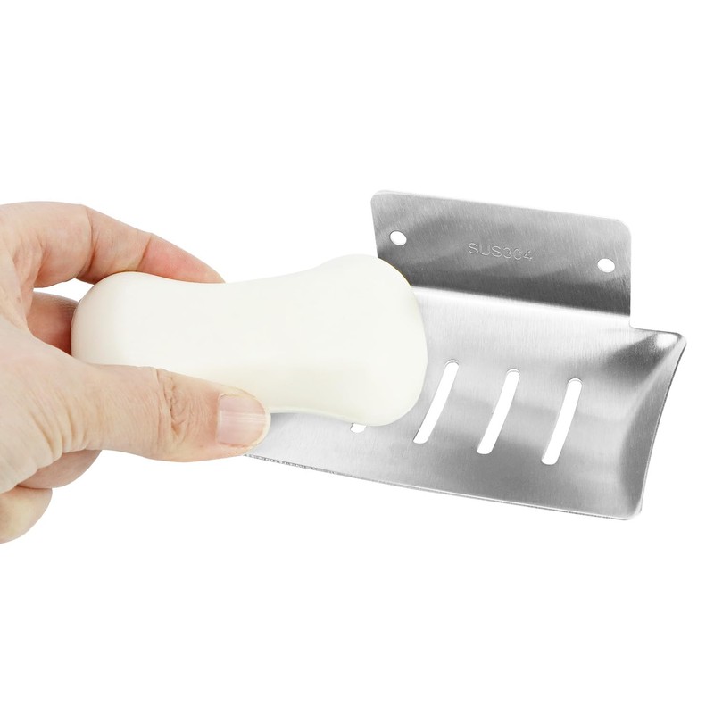 QWORK® Soap Holder with Drain Hole Design - Made of 304 Stainless Steel - Rustproof Soap Dish for Bathroom & Kitchen - Silver
