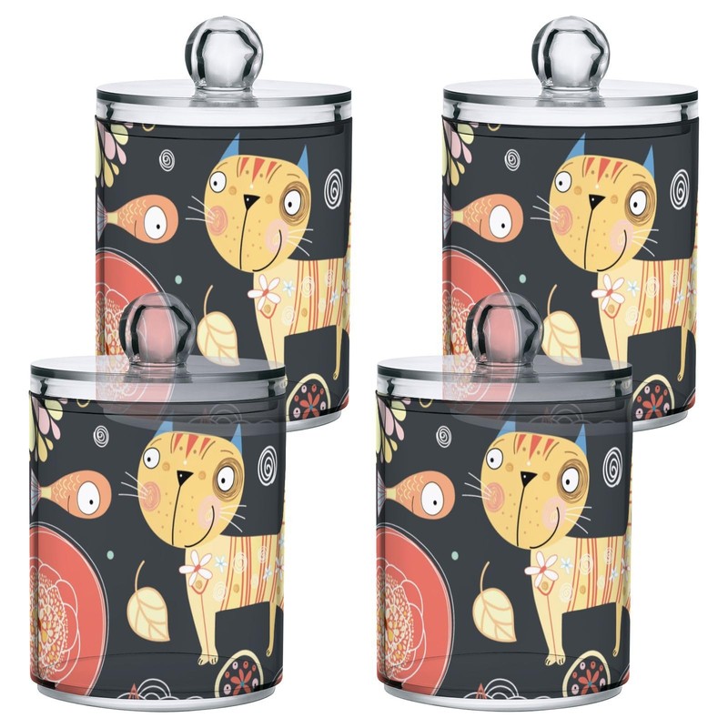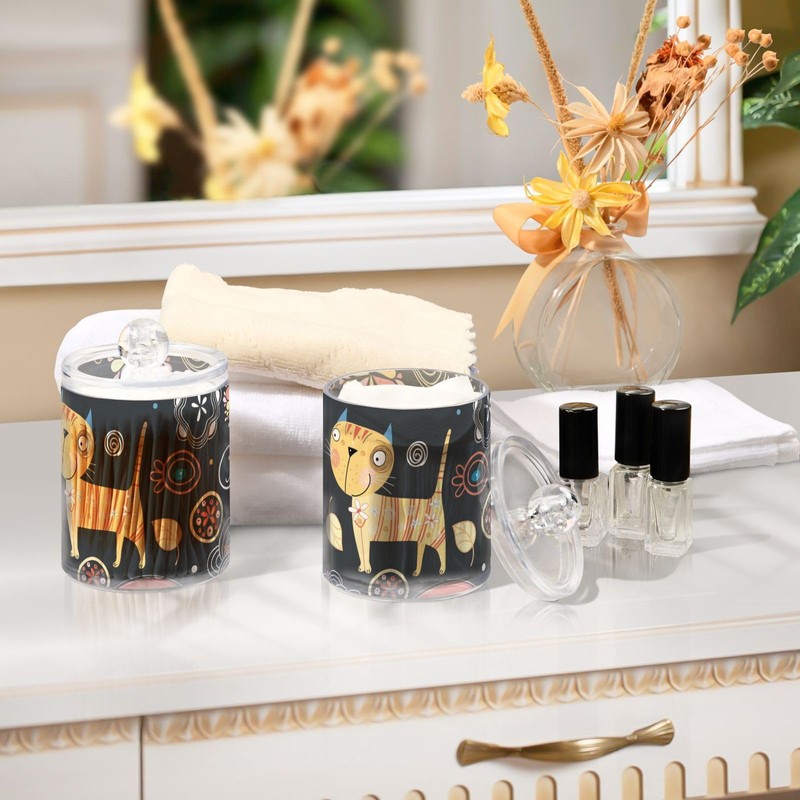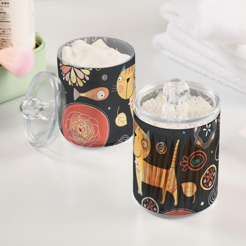QwThum 2 Pack Qtip Holder Apothecary Jars with Lids Qtip Dispenser Set Clear Plastic Canister Cans Organizers Storage Bathroom Countertop Jars for Cotton Ball Pads Swab Floss Cute Cat