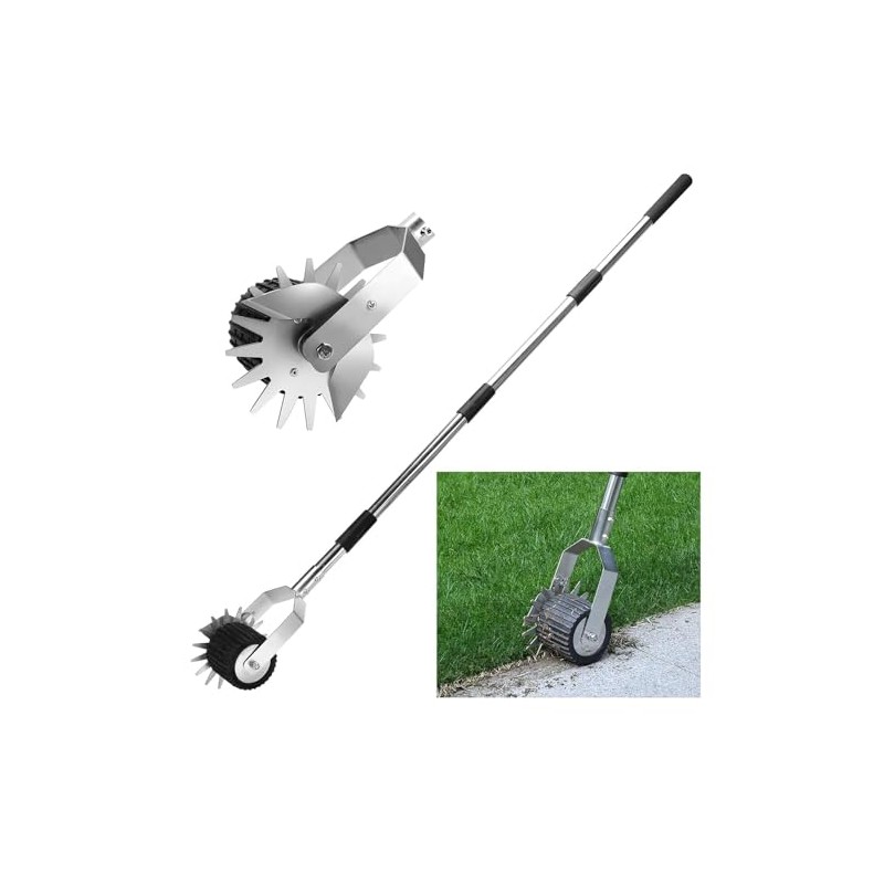 QWUIU Wheel Rotary Manual Edger Lawn Tool, Grass Edge Trimmer, Sidewalk Lawn Edger Tool, Adjustable 3 Sections Stainless Steel Handle, Ergonomic, 8"