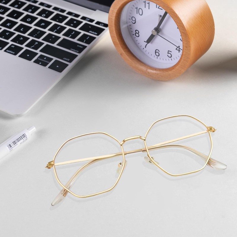 QxAiVMin Fashion Polygon Metal Reading Glasses Women Men, Retro Blue Light Blocking Computer Readers, Anti Eyestrain Eyeglasses