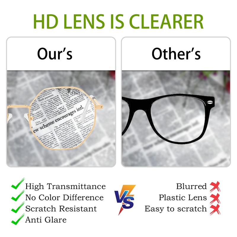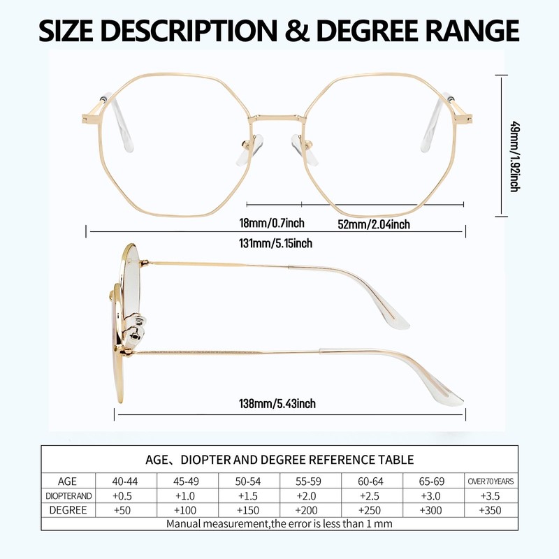 - 【Retro Fashion Reading Glasses】Our stylish metal reading glasses are designed with a polygonal frame and matched with high-quality metal frames, which retains the retro style without losing the fashion sense, making your reading glasses more fashionable