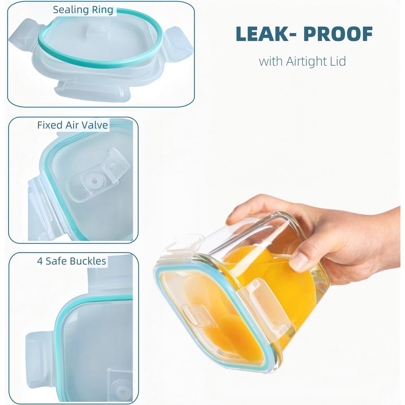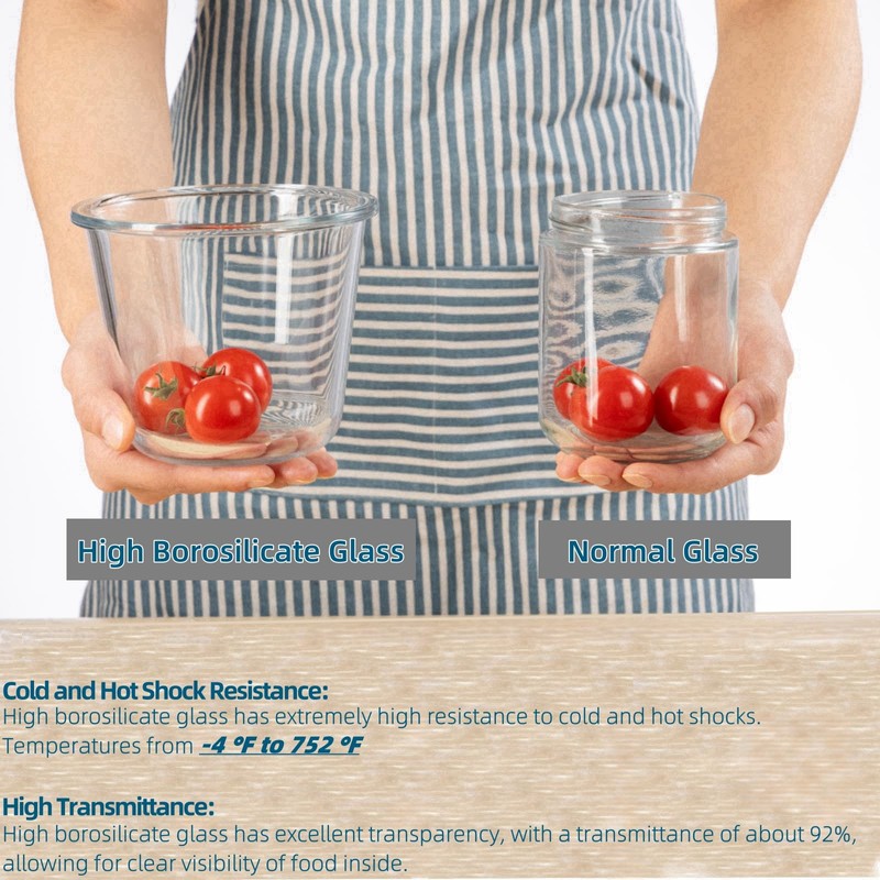 • SAFE AND CONVENIENT: Microwave, oven safe (not for the lids), freezer, dishwasher safe. Work temperature: -4℉ to 752℉ (-20℃ – 400℃). These glass food containers offer the convenience you need for meal preparation. The borosilicate glass is resistant to thermal shock, ensuring it can handle temperature changes without breaking.