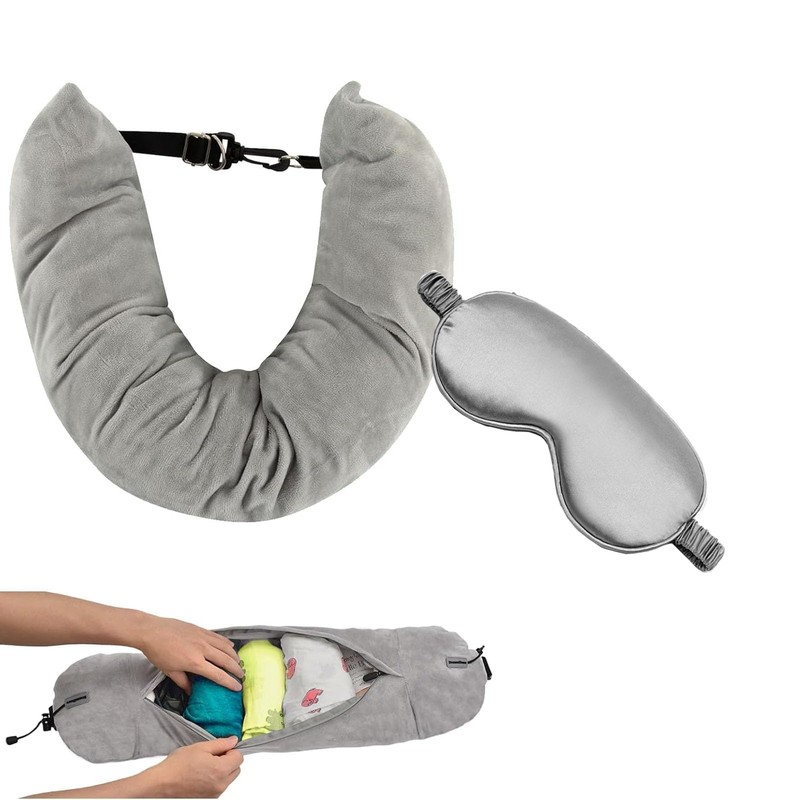 - Benefit: Eye mask Lightweight and breathable,Blocks out bright sun light. Our stuffable neck pillow for travel ensures a comfortable sleep during your traveling.With its self-filling feature, you can save luggage space by stuffing your clothes into this pillows.