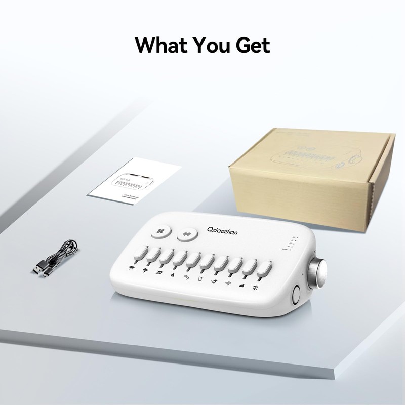 Qxiaozhan White Noise Sound Machine for Sleep with Slider Rail Button for DIY, Rechargeable & Adjustable Volume Sound Machine with 30 Soothing Sounds & Timers for Travel,Insomnia,Adults (Sleek White)
