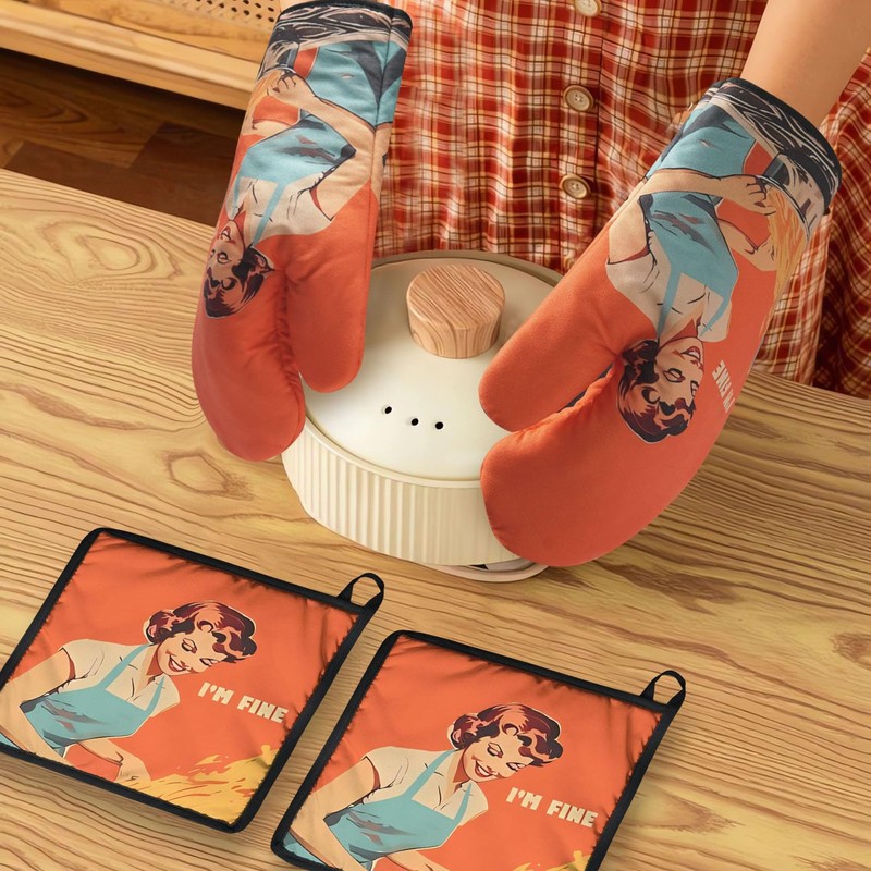 • Stylish Design: Featuring unique and vibrant patterns, our oven mitts add a touch of fun to your baking experience. The high-quality printing allows for machine or hand washing without fading, ensuring they remain stylish and effective for long-term use.
