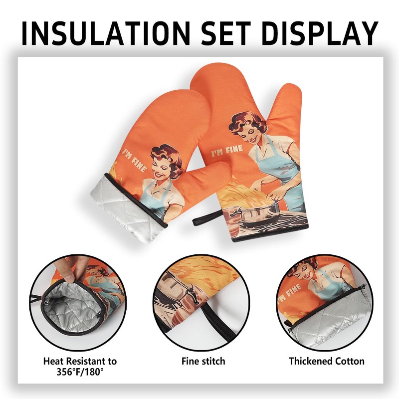 QXWREL Oven Mitts and Pot Holders Sets of 2 Orange Funny Heat Resistant Oven ...
