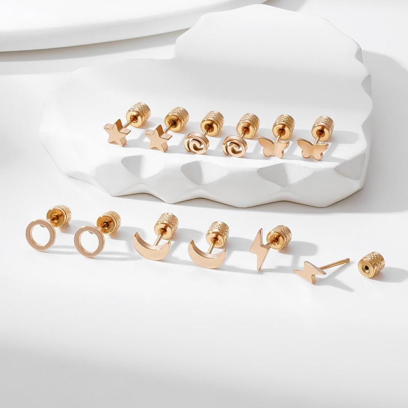 - Simple Geometric Stud Earrings: Geometric stud earrings set, comes in 6 pairs per set, include circle stud, butterfly stud, moon stud, star stud, lightning stud and vortex stud earrings, and comes with 6 butterfly buttons. Simplistic and delicate looking, classic and stylish, suitable for men and women.