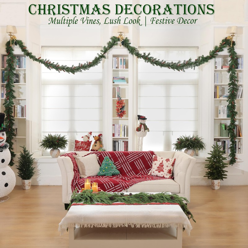 - 【Versatile Christmas Decor for Indoor/Outdoor Ambiance】From tabletops to tree toppers, these unbreakable branches elevate any space. Their soft, flexible design resists shedding, making them ideal for garlands, wreaths, or dazzling indoor Christmas decorations.
