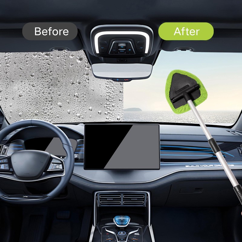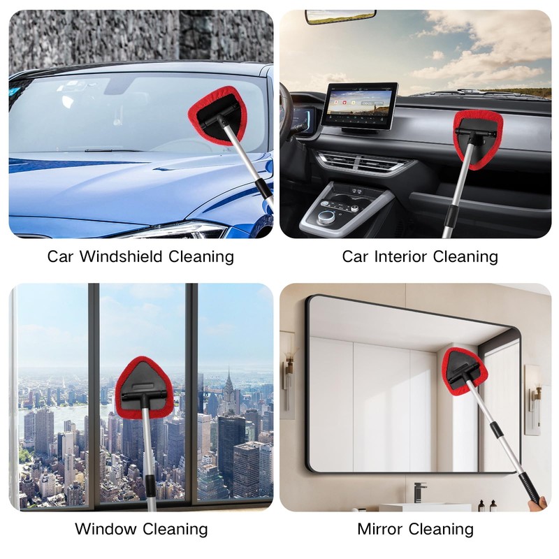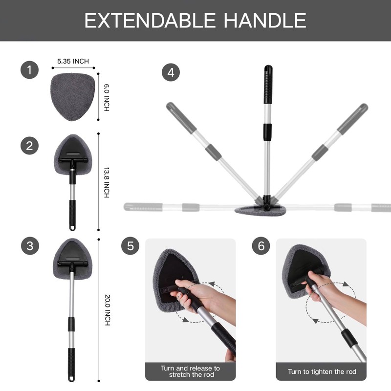 - The triangular head can be connected with the extendable handle. It can be rotated 180 degrees to clean hard-to-reach areas of the windshield glass