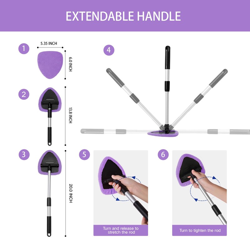 - With 2 different heads that is rectangular and triangular and 2 detachable and extendable handles. They can be rotated 180 degrees to clean hard-to-reach areas of the windshield glass