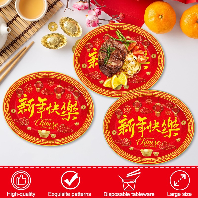 Our Chinese New Year dinnerware is pretty and elegant, adding classic Chinese spring festival elements and beautiful fonts. The Chinese New Year's Eve supplies just look like a picture on your table and leave an unforgettable impression on your guests.