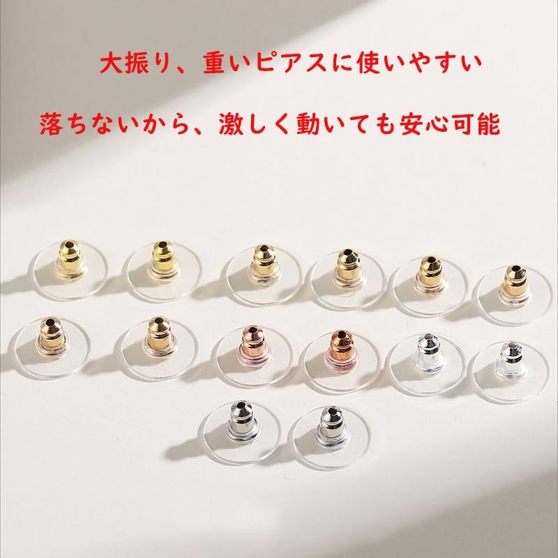 QYHH040 Large Piercing Catch, Prevent Downward, 20 Pieces (10 Pairs) with Guard Disc Catches, Gold, Silver, Transparent, Accessory Parts, Piercing Parts, Handmade