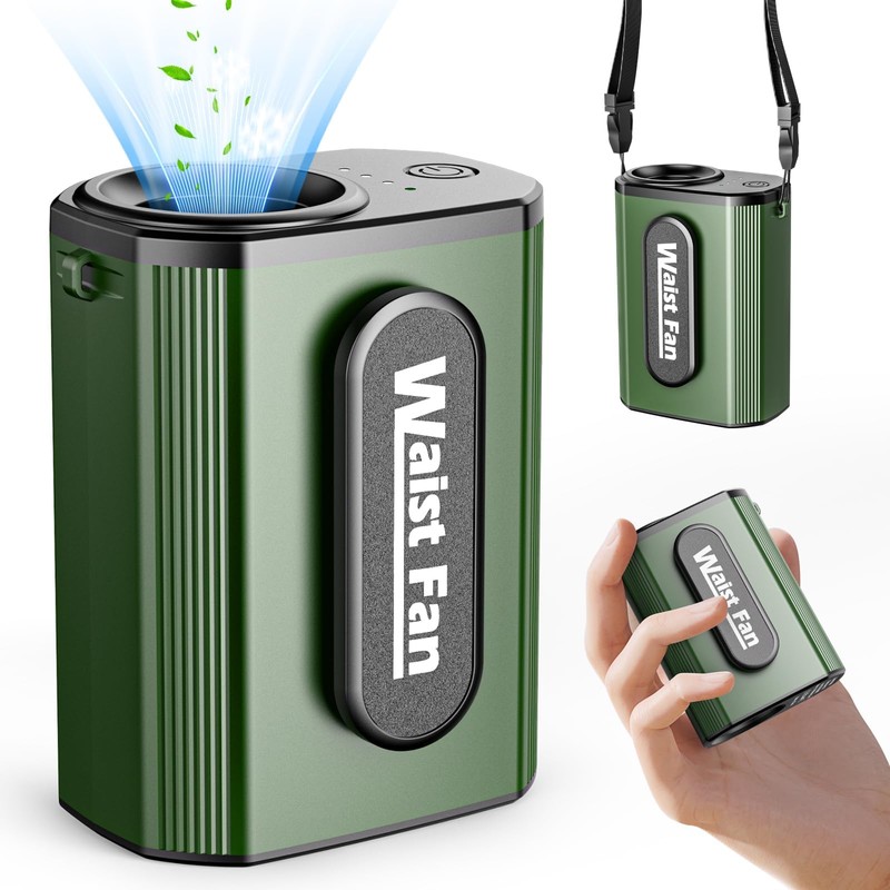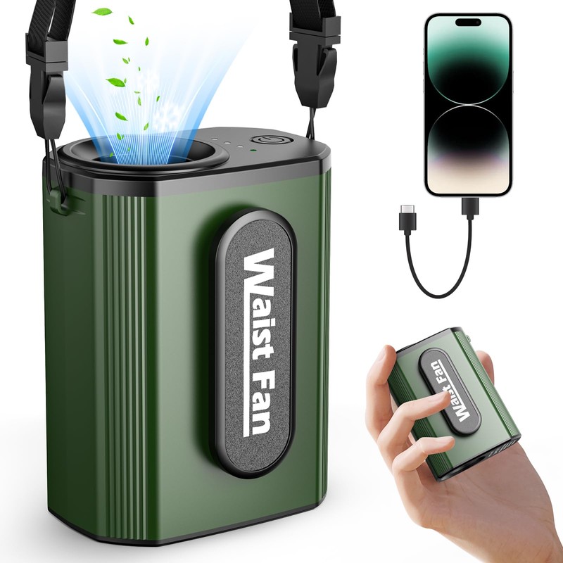 - 【Lightweight and Portable】At 0.64lbs (lighter than your smartphone), Our waist-mounted fan is designed to be lightweight and portable, easily clipped to your waist, hung around your neck, or placed on your desk, making it the perfect companion for outdoor activities and daily life. Whether you're running, cycling, fixing a car, or working indoors, this fan keeps you cool anytime, anywhere. It’s also an ideal choice for construction sites, gardening, delivery work, and outdoor labor!