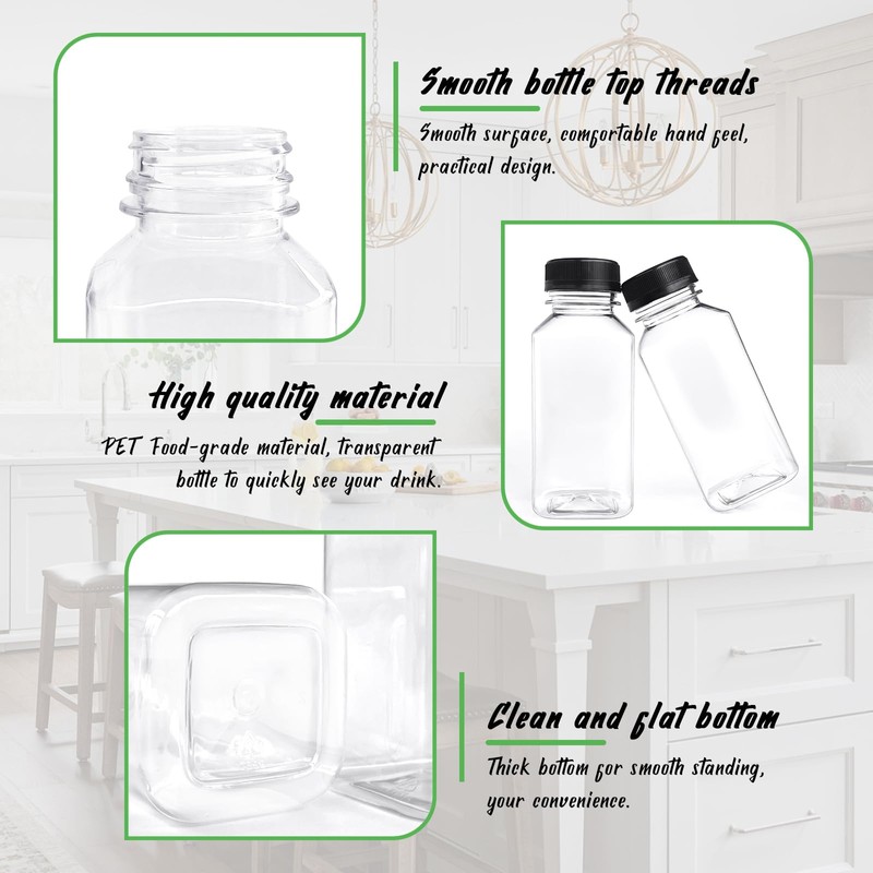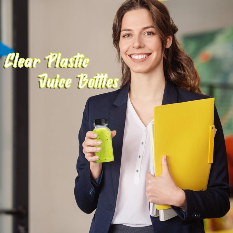 - 【PACKAGE INCLUDED】8 pcs empty plastic juice bottles with tamper-proof lids(size: 2.1x 5"/5.4x12.8cm),1 funnel.Reusable plastic bottle is a ideal choose for work,class and tourism,easy to carry.