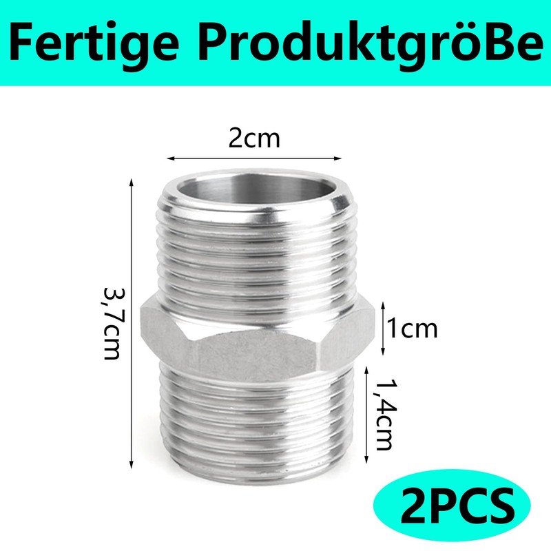- Reliable connection: the external threads on both sides ensure a firm and leak-free connection. The adapter is ideal for plumbing installations, mechanical engineering, chemical plants or DIY projects.