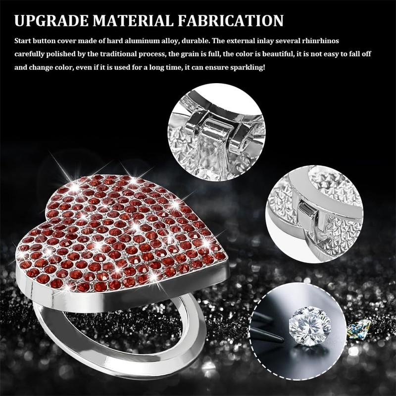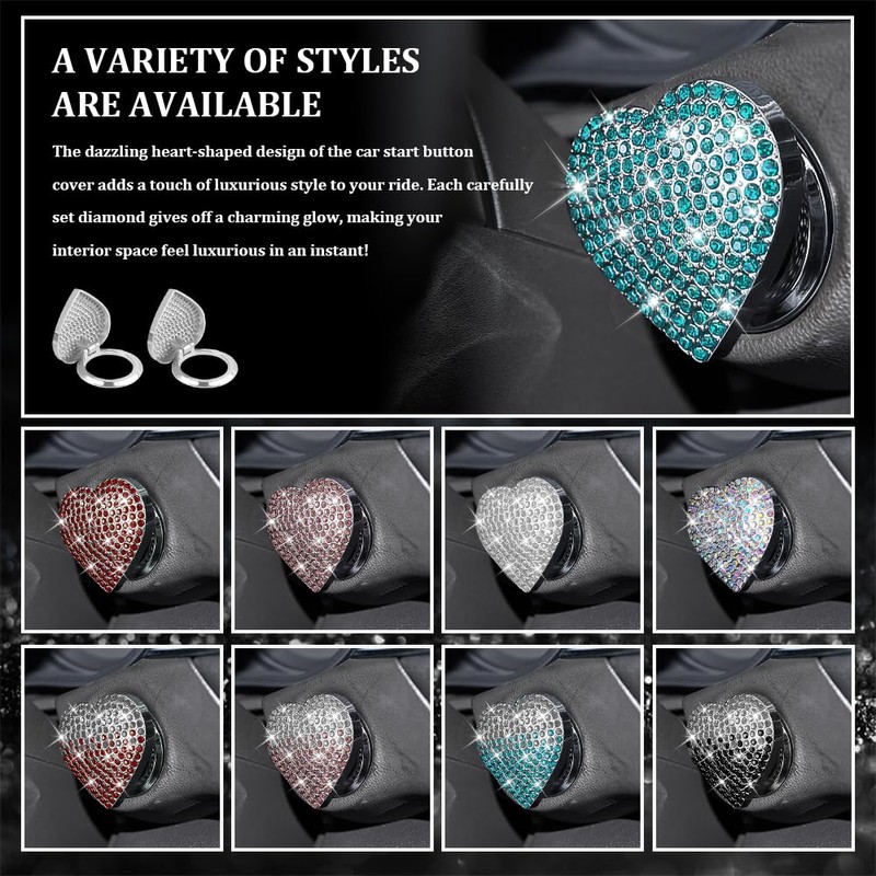 - [Good material] : Heart-shaped design car start button cover with zinc alloy and boutique diamond as the main material, full eye-catching, beautiful color, not only beautiful and generous, but also dust and scratch resistant, can maintain a sparkling state for a long time, durable