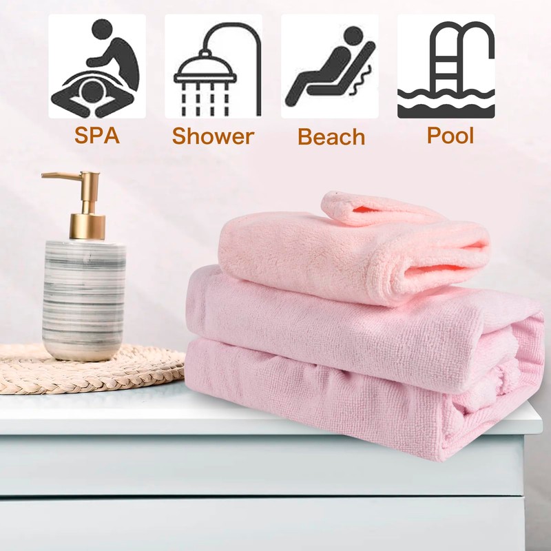 - 🛀 Bath Wrap Towel & Hair Turban & Headban: This product comes in 3 packs, which includes a bath towel, headband and hair drying turban. When you get out of the shower, you can choose a combination of bath towel and turban, the unique twist and loop system makes the hair towel wrap that stays in place. It means you can save time and go straight to other things. Tender microfiber hair towel dry quickly in a healthier way without damaging hair with a hairdryer.