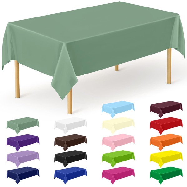 - Fully covered size: Tailored to fit standard rectangle tables, our sage green plastic tablecloth measures 54 x 108 inches. As a table cloth rectangle table option, it provides complete coverage and boasts stain-resistant and waterproof properties.