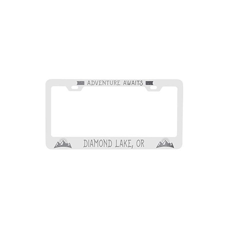 R and R Imports Diamond Lake Oregon laser engraved Metal License Plate Frame Adventures awaits Design