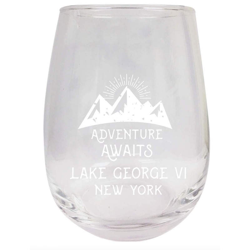 - This 9 oz stemless wine glass features Lake George Vi New York