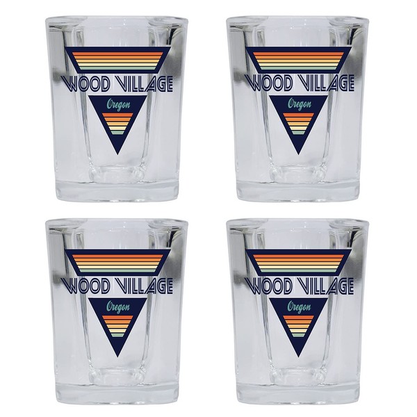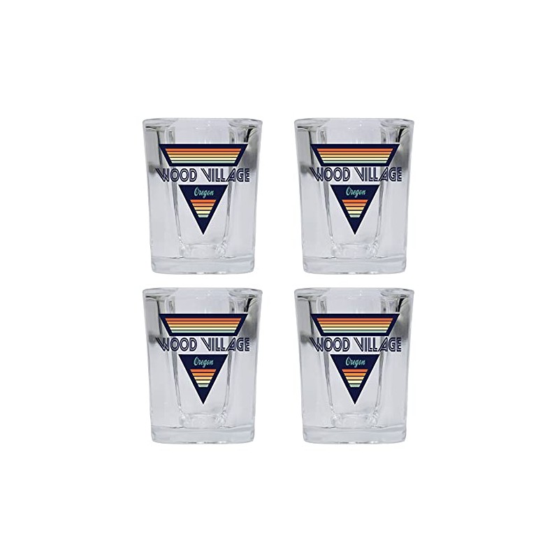 R and R Imports Wood Village Oregon 2 Ounce Square Base Liquor Shot Glass Retro Design 4-Pack