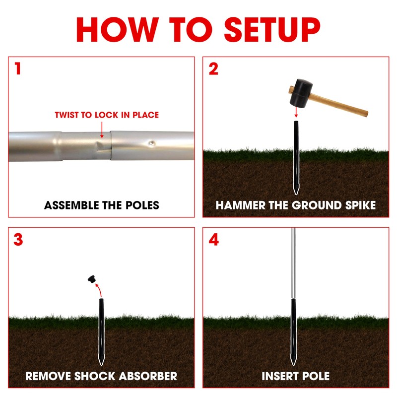 - Black PVC Ground Spike: The kit includes a black PVC ground spike that serves as the base for the flag pole. The ground spike provides a stable and secure foundation, keeping the flag pole upright and preventing it from wobbling or leaning. The black PVC material is durable and resistant to outdoor elements, ensuring long-lasting stand