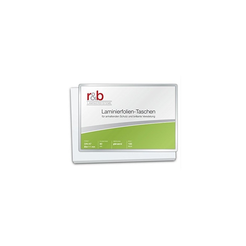 R & B Ft A7 Laminating Pouch A7, 80 x 111 mm; 2 x 80 Micron Pack of 100