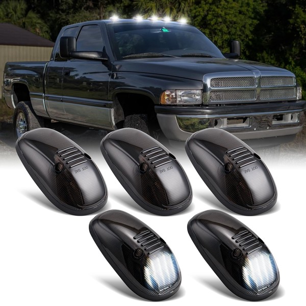R&F Auto LED Cab Lights 5 Pcs Smoked Cab Roof Marker Lights Compatible with Ram 1500 2500 3500 (1999-2001) Pickup Trucks Roof Lamps Smoked Lens White Lights