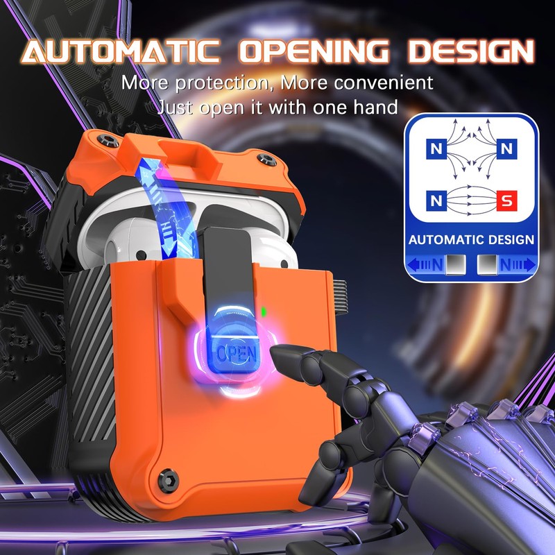 • 【Upgraded Lock and Auto-Pop-up Lid Protection】: R-fun case has upgraded locking and auto-pop-up cover functions to provide full protection compatible with your Airpods 2nd Gen/1st Gen. This case features an all-around shock-absorbing design to prevent accidental drops and collisions. The auto-closing feature prevents the case from opening when dropped from a height, effectively protecting your valuable headphones from any damage.