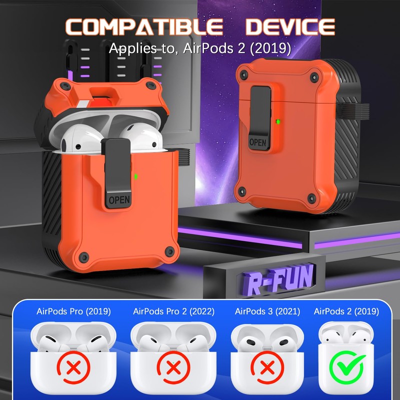 • 【Compatible Models】: The R-fun protective case is only compatible with AirPods 2nd Generation (2019) and AirPods 1st Generation (2016).