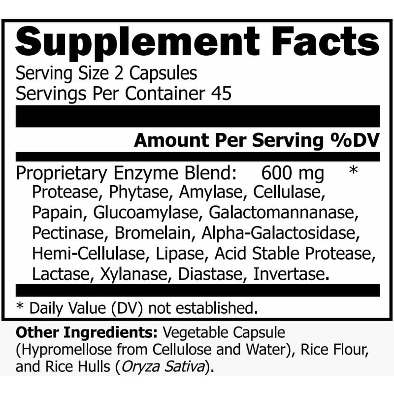 Each vegetarian capsule contains four different types of enzymes to digest proteins, four types for digesting fibers, a powerful enzyme for digesting fats and oils, two types that reduce starches, and six types of enzymes for sugars, grains and dairy products.