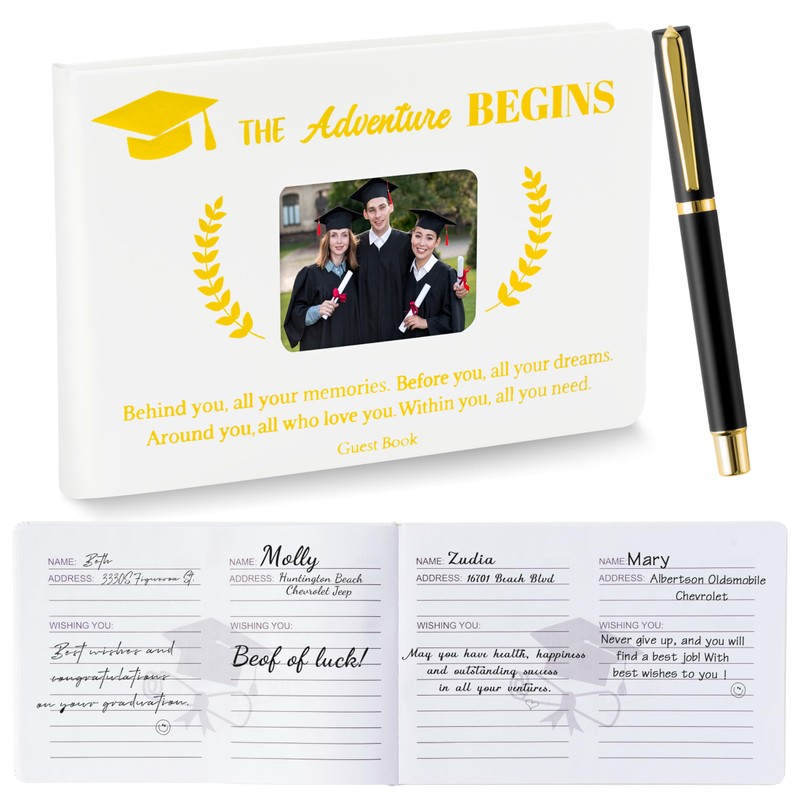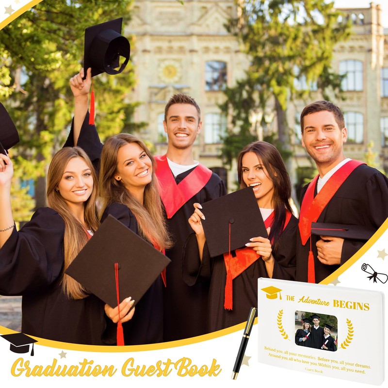 • 2025 Graduation Guest Book Set: This set includes a beautifully designed graduation sign-in book and a pen, perfect for capturing heartfelt messages and signatures from classmates, friends, and family. It’s an ideal keepsake to cherish memories from your graduation celebration. Whether for college or high school, this guest book is a thoughtful addition to any graduation party or ceremony, making it a meaningful gift for the Class of 2025.