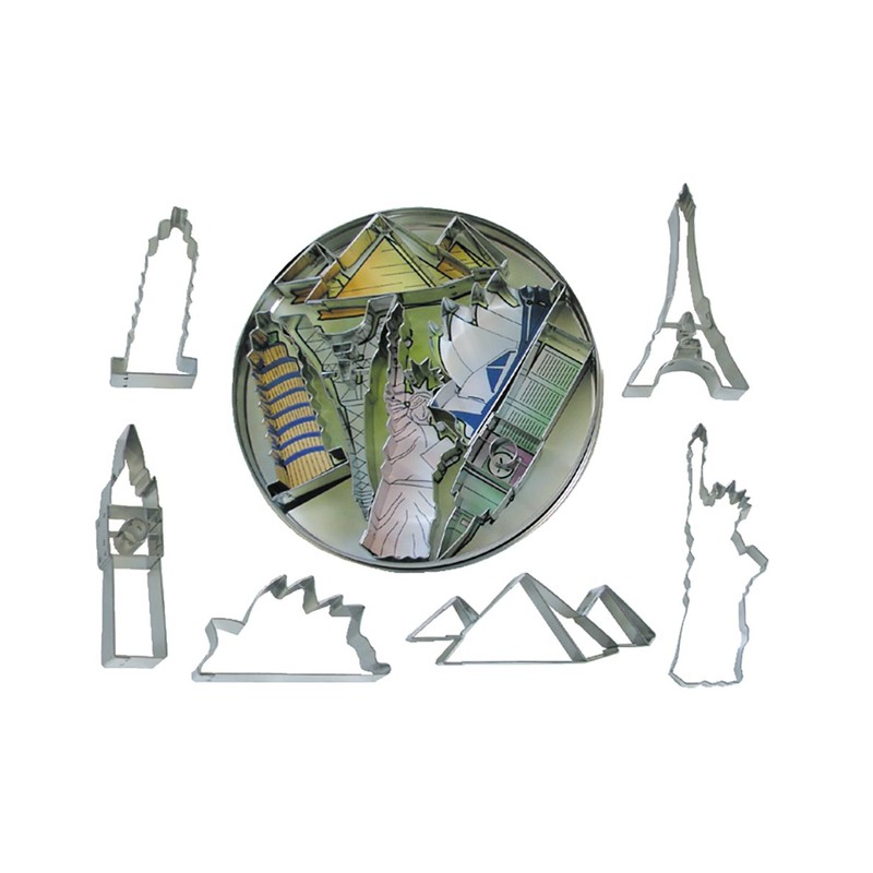 - Set of 6 tinplated steel Landmarks themed/shaped cookie cutters