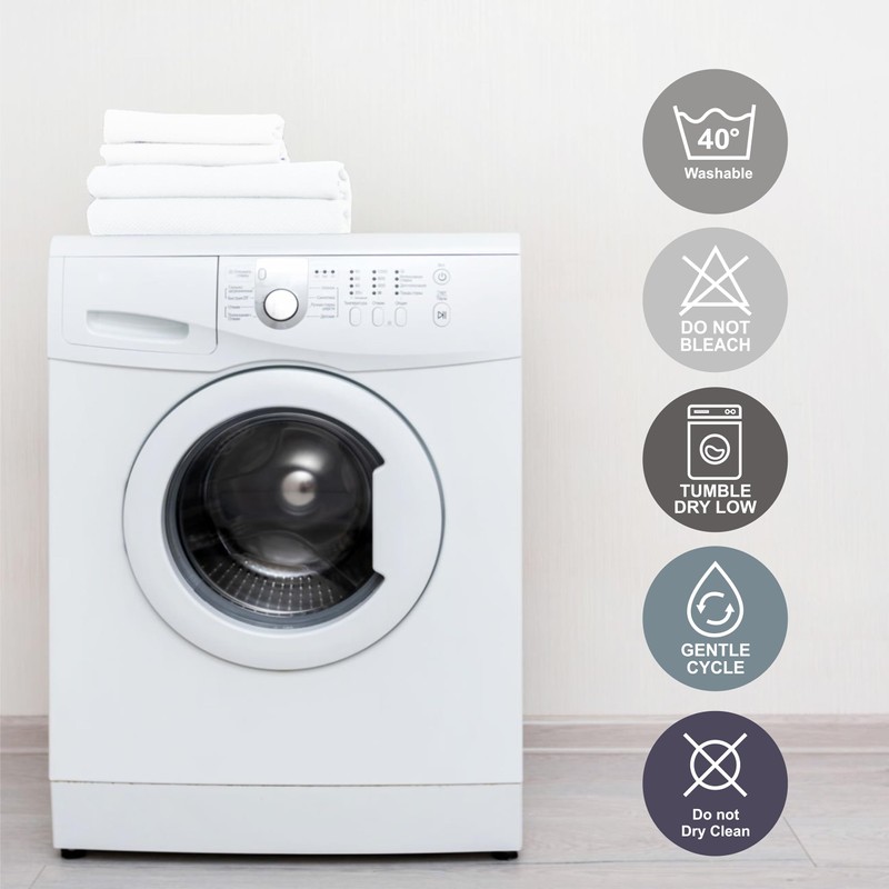 - Washing: This care instruction advises that the fitted sheet is suitable for machine washing, simplifying its maintenance. However, it highlights the importance of separating dark-coloured items during washing to prevent potential colour transfer onto lighter fabrics. You cannot bleach this fitted sheet.