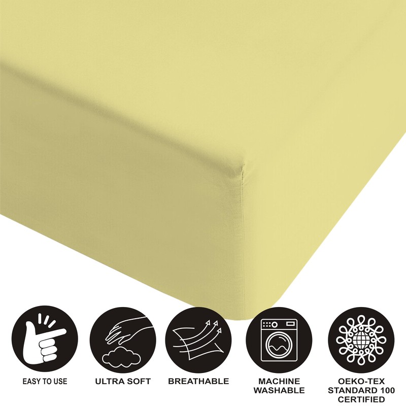 R&Z Extra Deep Polycotton Non Iron Fitted Sheet Easy Care 40cm (Lemon, King)