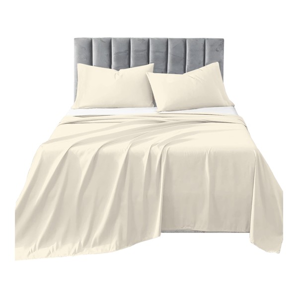 R&Z Plain Luxuary Polycotton Flat Sheets Single, Double, King, S King (Cream, Double)