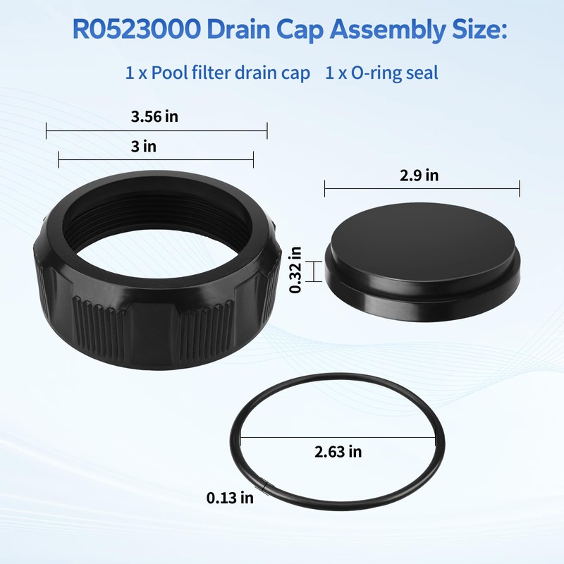 - After Sales Support: Any brand name or model name of this pool filter drain cap is only used to prove compatibility. If you have any questions or concerns about our compatibility with Zodiac Jandy pool filter drain cap R0523000, please do not hesitate to contact us